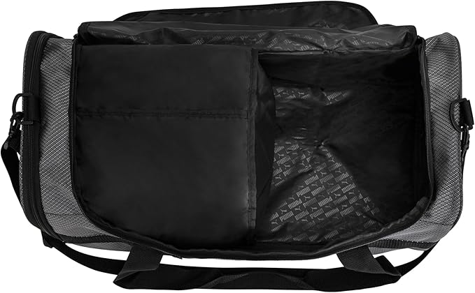• STYLING: With its sleek design and high-density printed PUMA logos, the Demand Duffel Bag exudes sporty sophistication. Its textured polyester construction and bold branding make it the ideal accessory for those who want to stand out while keeping their gear organized.