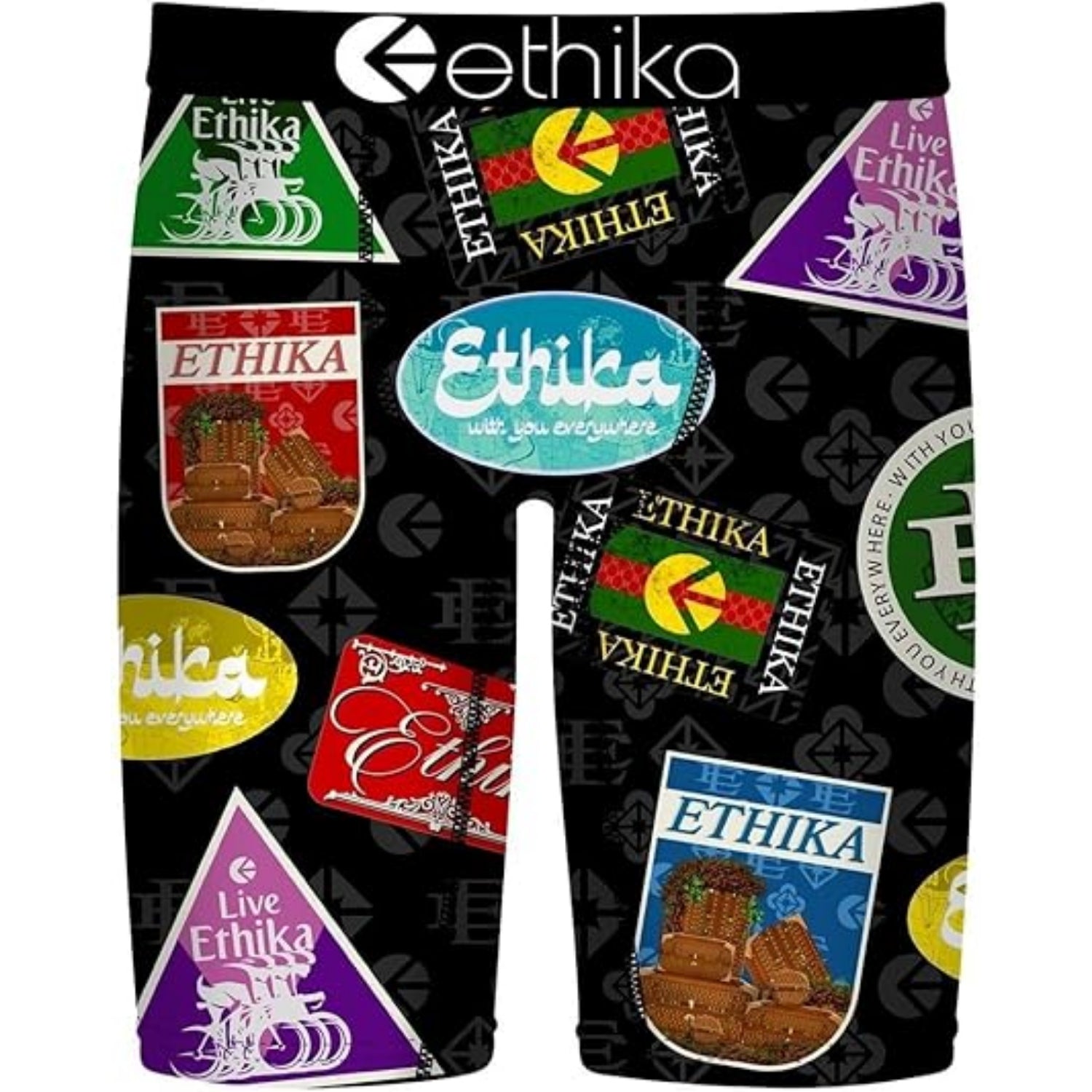 Ethika Men’s Boxer Brief, Knee Length, 4-Way Stretch Performance Underwear with Graphic Prints - Out The Trunk
