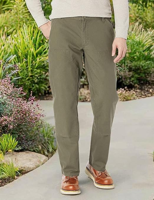 Built with stretch and a relaxed fit, these double-fronts make it easy to move through your workday. 12-ounce, 99 percent cotton/1 percent spandex duck • rugged flex durable stretch technology for ease of movement • sits at the waist • relaxed seat and thigh • double front with cleanout openings that accommodate knee pads • multiple tool pockets • left-leg hammer loop • stronger sewn-on-seam belt loops • heavy-hauling reinforced back pockets • straight leg opening fits over boots • imported