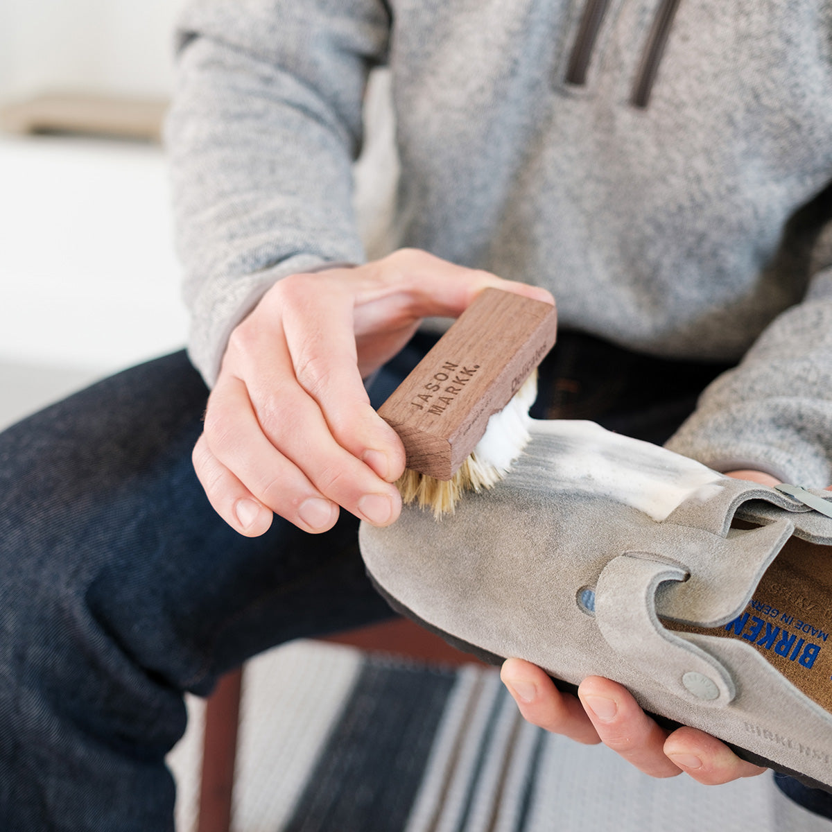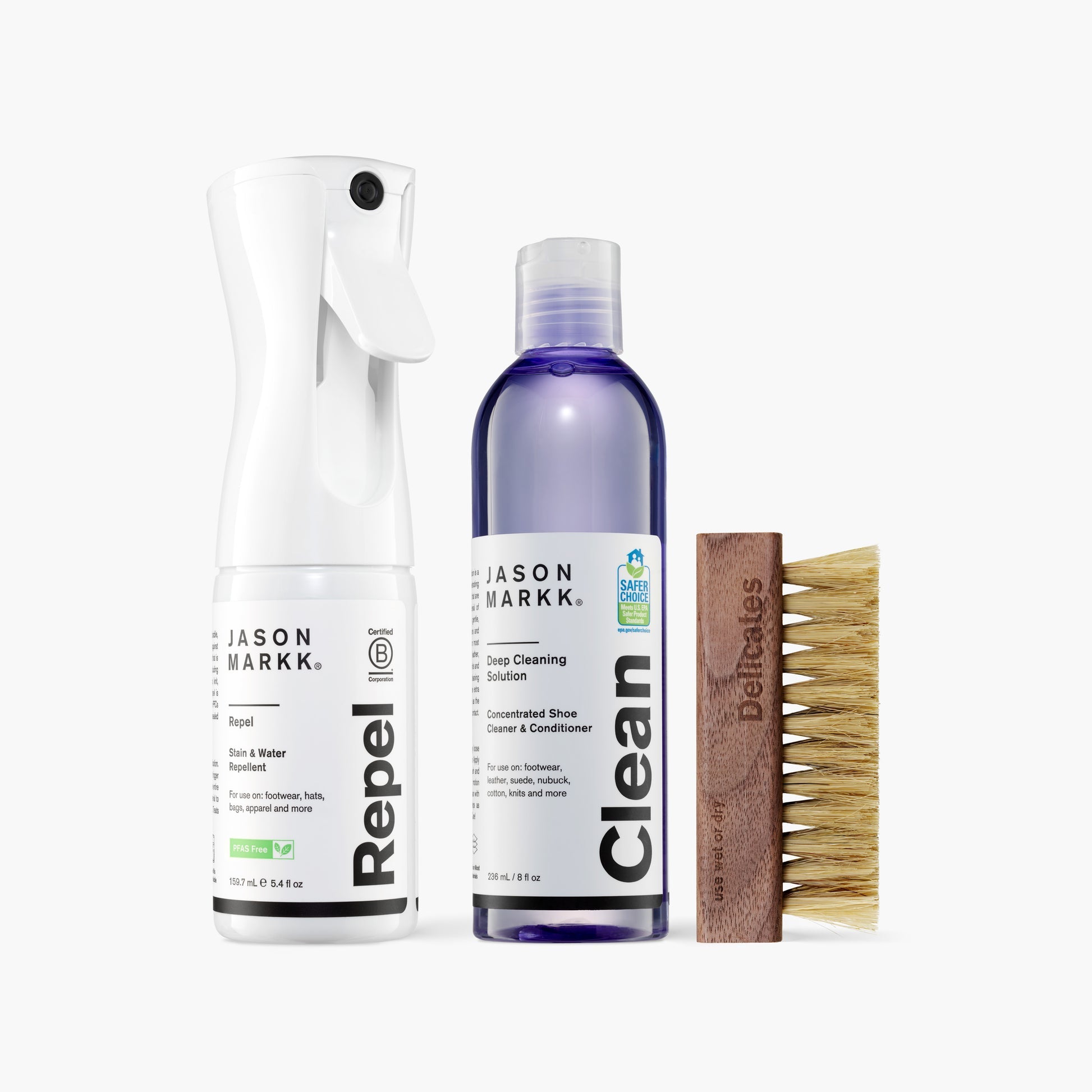 The Suede & Nubuck Bundle is designed for those who want to go beyond surface cleaning. Our 8oz Premium Deep Cleaning Solution provides a powerful yet gentle clean, effectively lifting deep-set dirt and stains. The Delicate Brush is perfect for safely scrubbing softer materials like suede, nubuck, and knits without damage. For a more targeted approach, the Premium Suede Cleaning Kit includes a suede eraser and brush to lift tough stains and restore texture. This bundle ensures your premium suede and nubuck footwear stays fresh, clean, and conditioned.