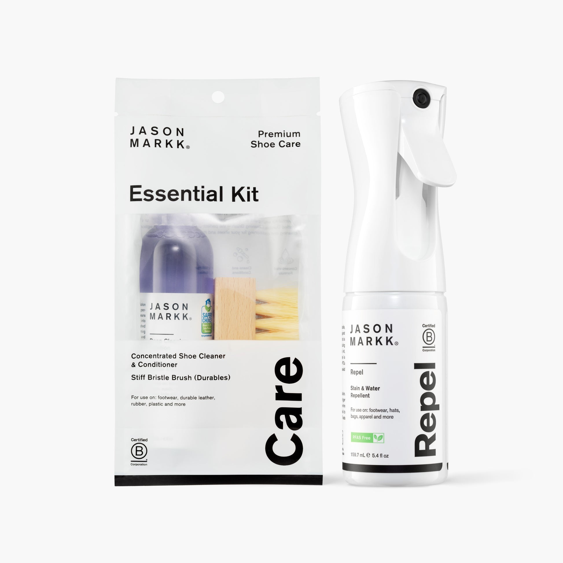 Jason Markk Essential Kit Shoe Cleaner & Repel Spray, Water & Stain Repellent, Non-Aerosol, 3-Piece Set