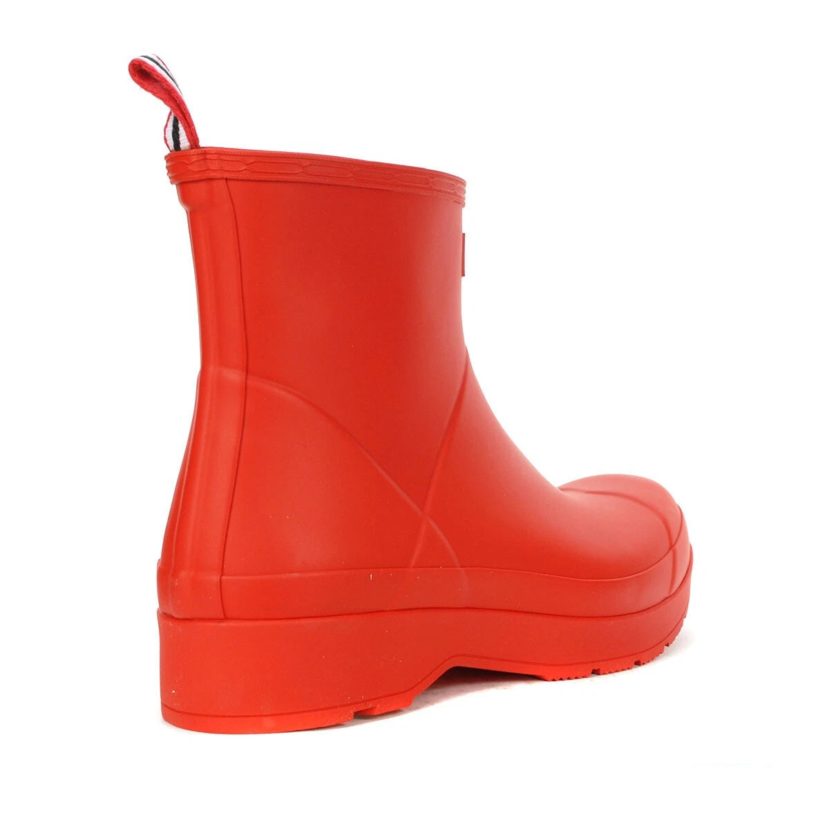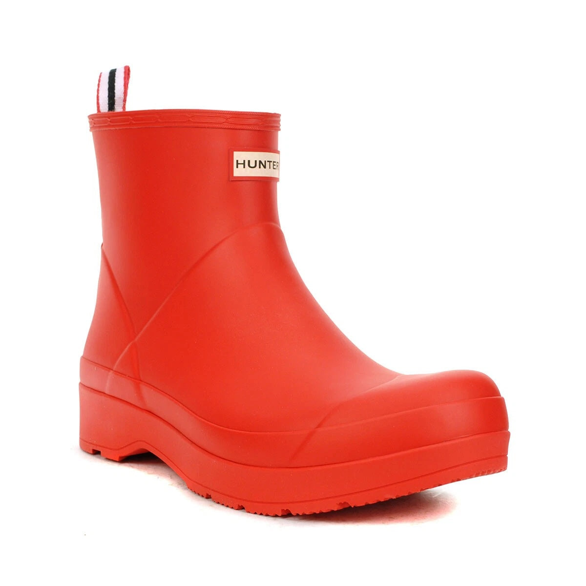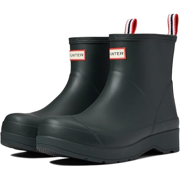 The Play Boot blends playfulness and practicality. A simplifying of the iconic design of the Original Boot, the Play Boot fast became a best-selling Hunter silhouette. Just grazing the top of the ankle, with a flatter sole and angled block heel for comfort, finished with a pull tab for easy foot entry. The design is crafted from the highest quality natural rubber, 100% recycled polyester lining and 100% waterproof.