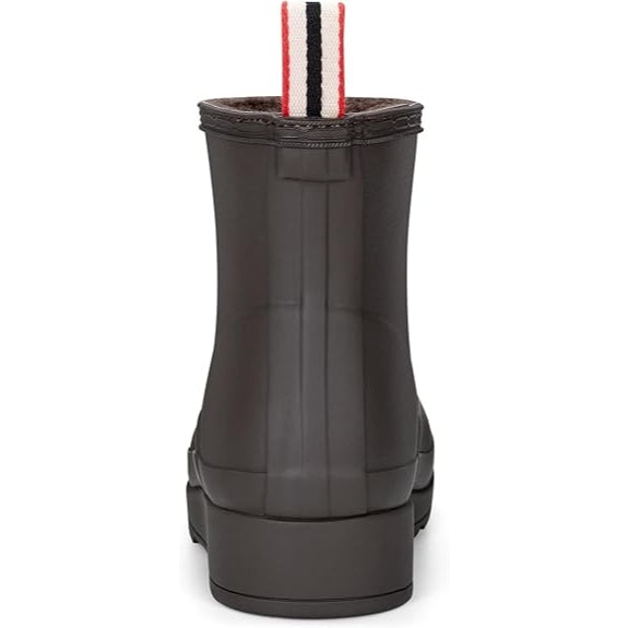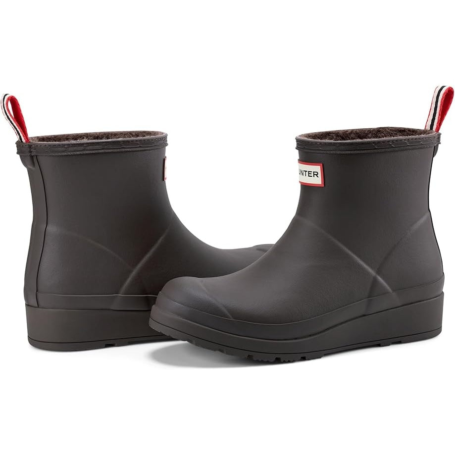 The Play Short Insulated Boot is able to be worn in temperatures as low as -5°C (23°F). A simplifying of the iconic design of the Original Boot, the Play Boot fast became a best-selling Hunter silhouette. Just grazing the top of the ankle, with a flatter platform sole for comfort, finished with a pull tab for easy foot entry. The design is crafted from the highest quality natural rubber, a cozy inner cocooning layer of vegan shearling lining and is 100% waterproof.