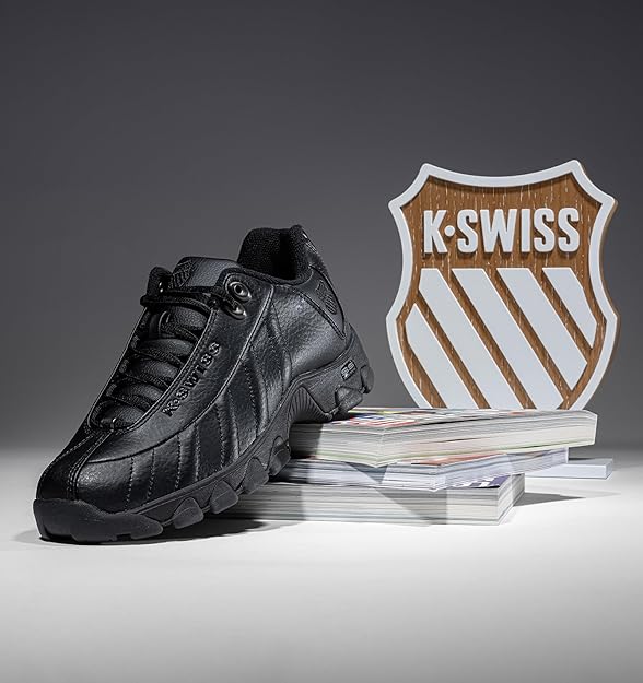 The St329 sneaker was the original tennis training shoe developed by K-Swiss, and has since become a cult-classic. Designed and built to last, this staple sneaker showcases a durable rubber outsole, sturdy tread, and maximum comfort with a k-eva cushioned midsole and premium memory footbed. Designed and built to last, this staple sneaker showcases a durable rubber outsole, sturdy tread, and maximum comfort with a K-EVA cushioned midsole and full length premium memory footbed.