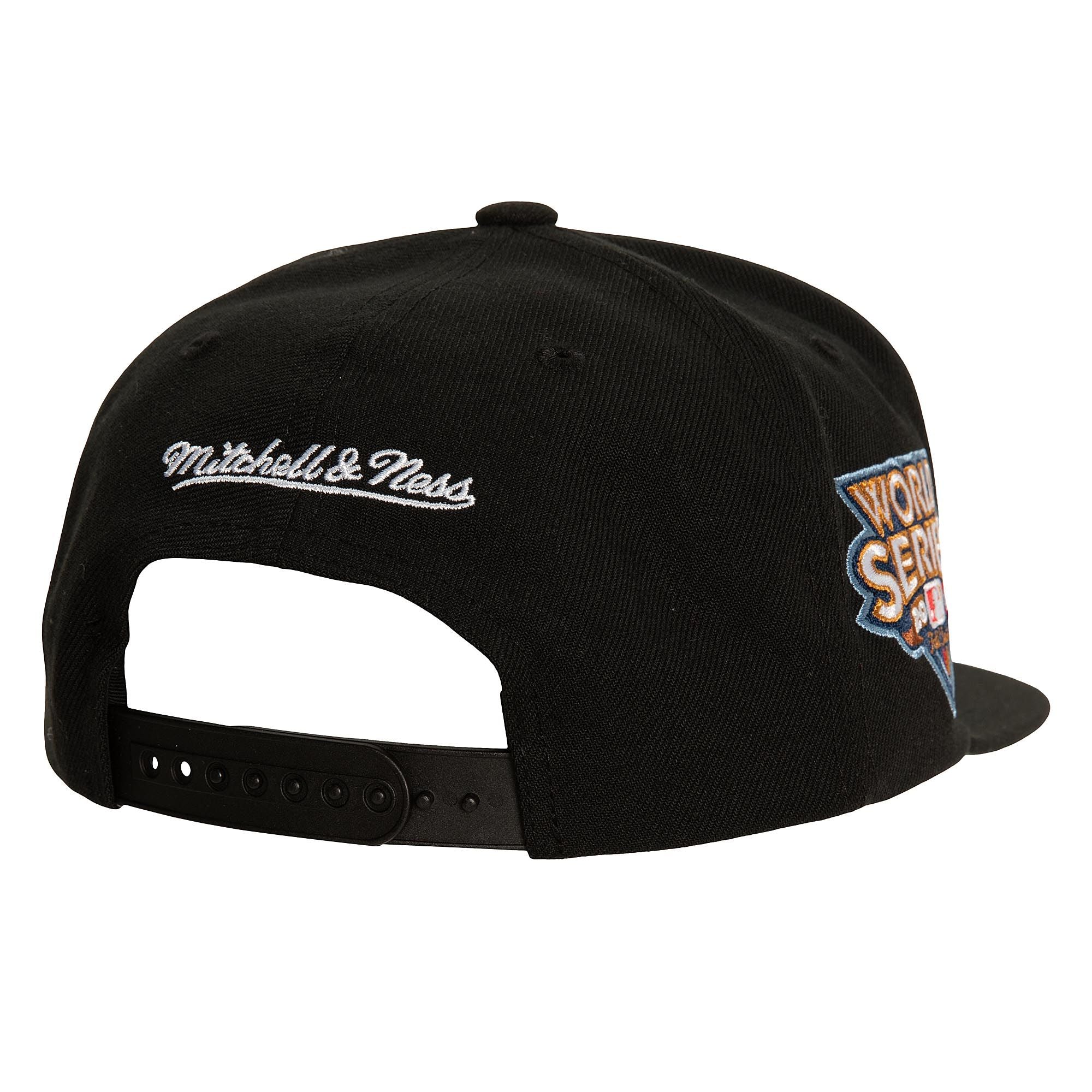 The Snap is Back. Mitchell & Ness bolsters the popularity of sportswear, delivering headwear in the company's most famed silhouette-the snapback. The snapback features a high-crown fit with pre-curve brim, 100% polyester wool-feel crown and visor, a contrast undervisor, raised, flat embroidered front logo, flat emrboidered side logo and a snap closure.