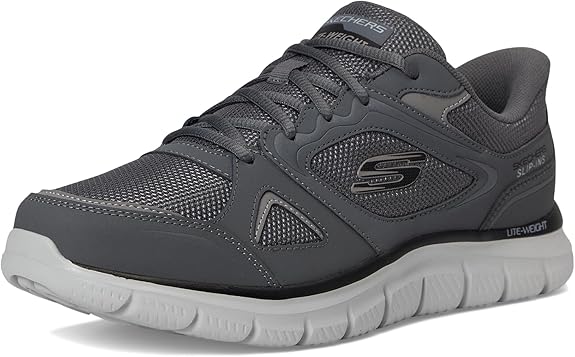 • SKECHERS SLIP-INS (HANDS-FREE): keep up the pace in enhanced comfort and stability with the Track Ezral sneaker; slip inside and go with these Skechers Slip-in athletic shoes for men