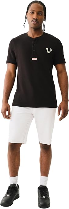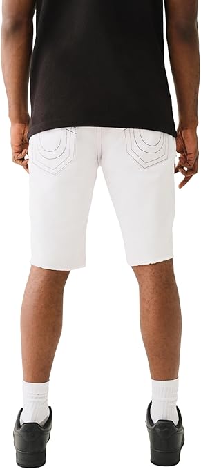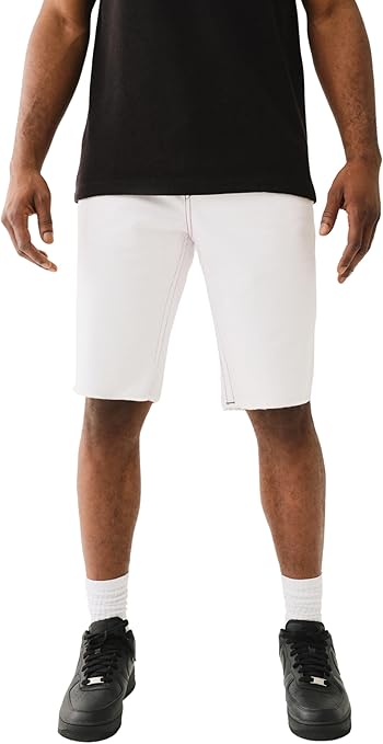 True Religion Men's RICKY SN FLAP SHORT featuring a trendy fray hem. Crafted from high-quality denim, these premium shorts are designed for a comfortable and relaxed fit, making them perfect for warm-weather days. The Ricky style is known for its classic 5-pocket design with flap pockets, offering both functionality and an elevated look.