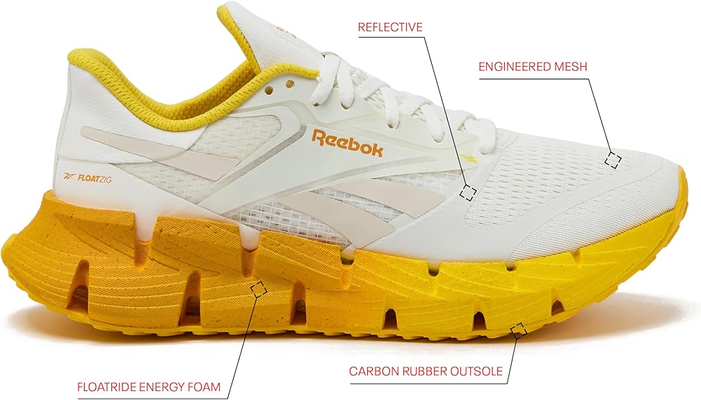 • REEBOK TECHNOLOGY - Why choose between soft and springy? Fast and smooth? Meet the new shape of running, the high energy return FloatZig 1 mens running shoes. Available in men's size 7 to 14.
