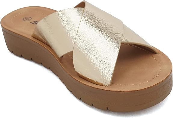 Soda LUCY ~ Women Open Toe Flatform Platform Crisscross Band Upper Fashion Slide Sandals