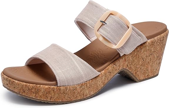 Bring your sunny day style to new heights of comfort wearing Skechers Cali® Brystol. This vegan double-band slide sandal features a linen canvas upper with an adjustable resin buckle, an articulated cork veneer midsole, and a cushioned Luxe Foam® footbed.