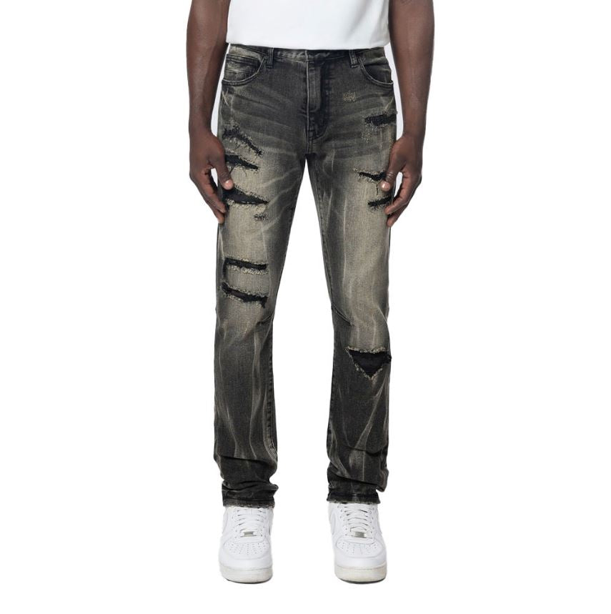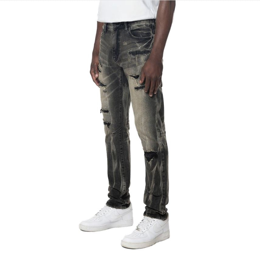 Smoke Rise Men's Rip and Repair Vertical Lighting Effect Jean's
