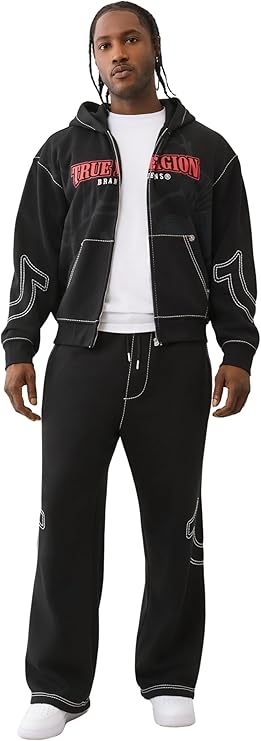 The True Religion Men's Baggy Big T Sweatpants offer the ultimate blend of laid-back comfort and signature streetwear style. Designed with a roomy, oversized fit, these sweatpants are crafted from ultra-soft fleece and feature the brand’s iconic Big T contrast stitching. Complete with an elastic drawstring waistband, ribbed cuffs, and True Religion horseshoe logo details, they’re perfect for off-duty days or elevated loungewear looks.