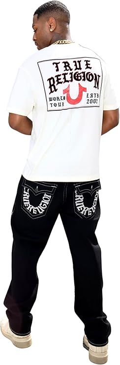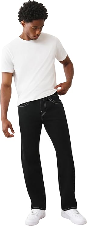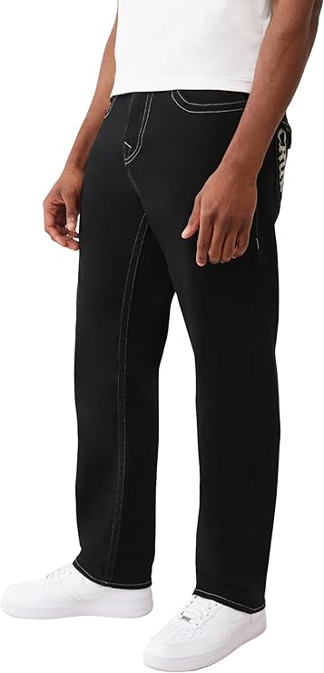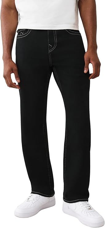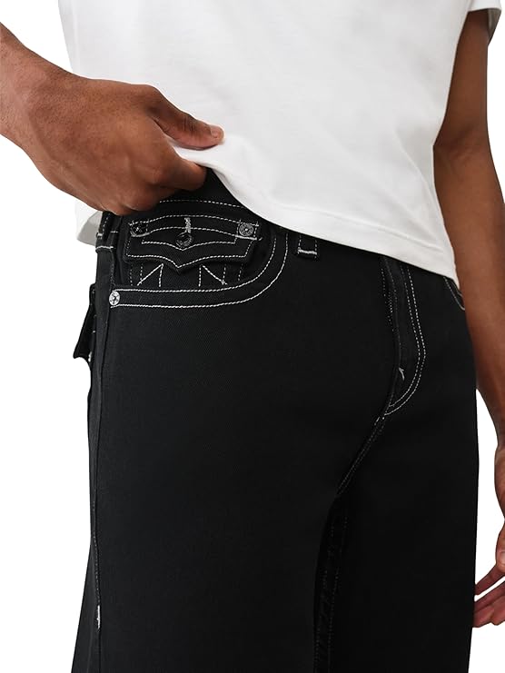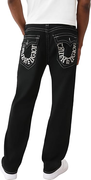True Religion Men's Bobby SN Flap Jeans – Relaxed Straight Fit Stretch Denim, 32" Inseam, Flap Pockets