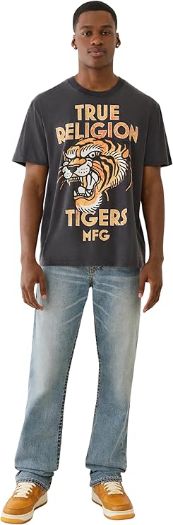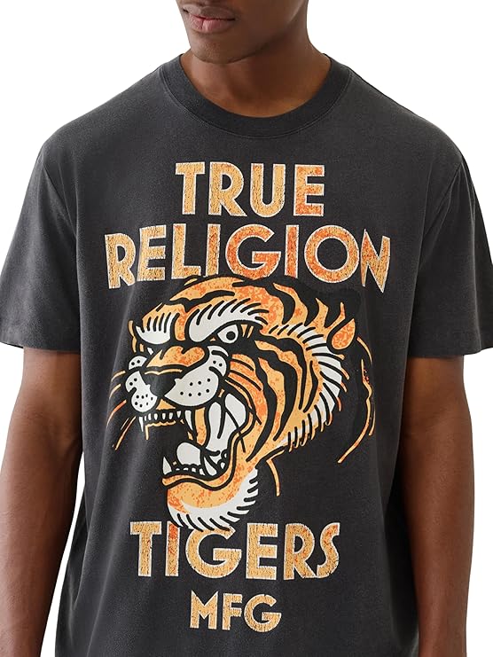 True Religion Men's MFG Tiger Vintage Tee – Graphic Crewneck T-Shirt