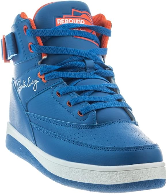 EWING Men's 33 HI x ORION REBOUND Basketball Shoes The 33 HI x ORIONs are the flagship basketball shoes by Ewing Athletics that feature the sole of our Orion model and the upper of the 33 HI with the new Ewing Rebound logo on the tongue. The Ewing Athletics 33 HI shoes look like the 1990 originals worn by Patrick Ewing but now they have a reversible ankle strap that can be worn on the front or back of the shoe. The ORION is an original model from 1992 that has now been brought back due to high recognition. Basketball requires shoes that ensure control, the Orion's sole is made of high-abrasion rubber with pivot point to enable optimal movement control along with the extra heel support to absorb shock and provide extra comfort. Basketball players and enthusiasts know that basketball sneakers should be cushioned and breathable enough to be a game changer for your performance, perforated design ensures enhanced breathability, while padded tongue is helping with extra cushioning for comfort. Known for his time with the New York Knicks, Patrick Ewing relaunched Ewing Athletics in 2012 to offer great basketball shoes honoring Patrick's rich heritage.