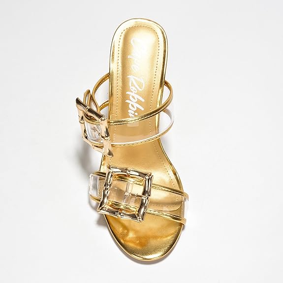 Cape Robbin Prunella Buckle Open Toe High Block Heels (Prunella)