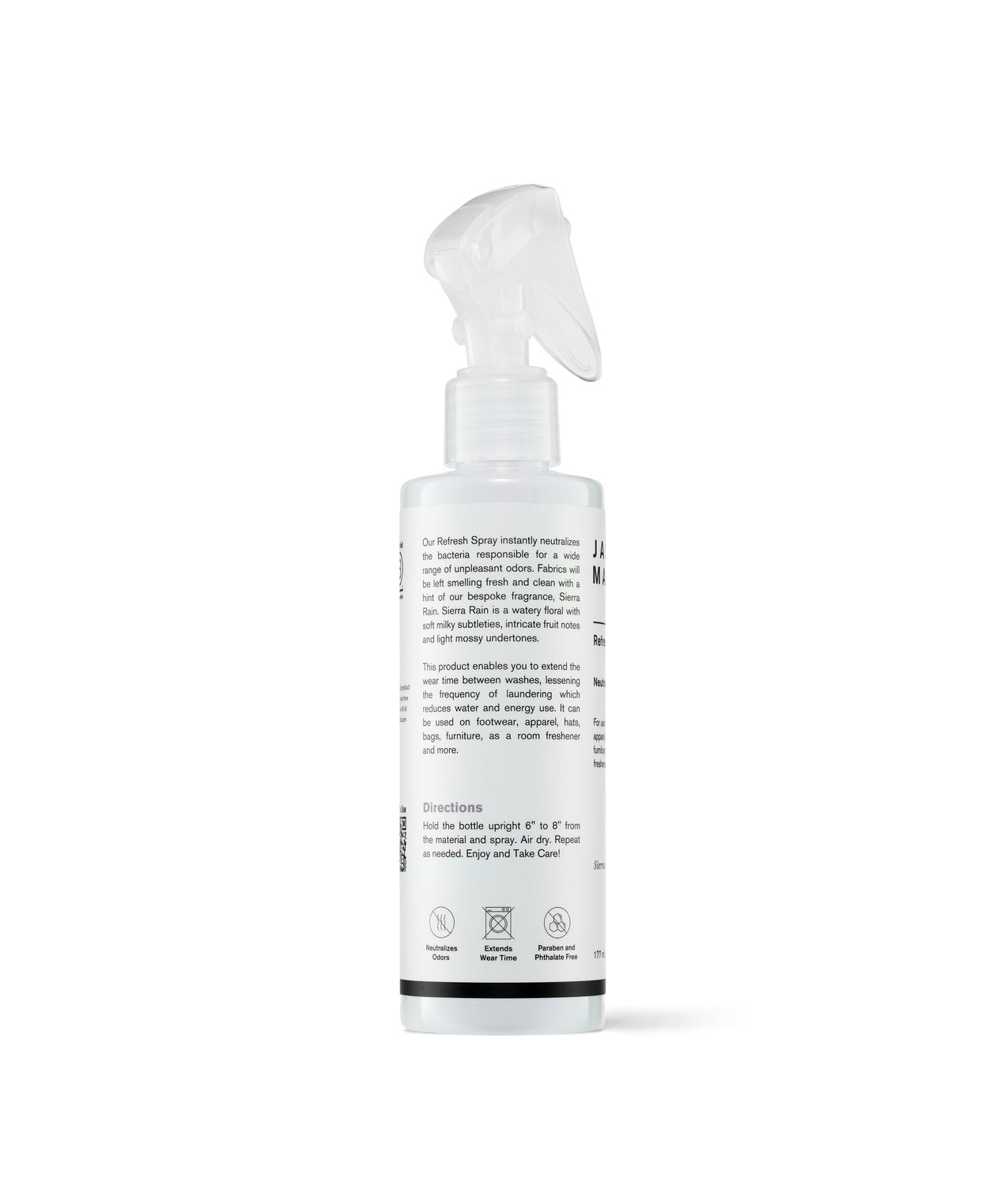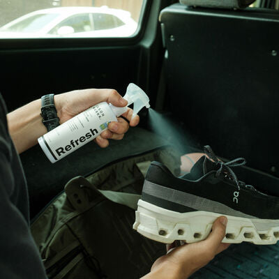 Our Refresh Spray instantly neutralizes the bacteria responsible for a wide range of unpleasant odors. Fabrics will be left smelling fresh and clean with a hint of our bespoke fragrance, Sierra Rain. Sierra Rain is a watery floral with soft milky subtleties, intricate fruit notes and light mossy undertones. This product enables you to extend the wear time between washes, lessening the frequency of laundering which reduces water and energy use. It can be used on footwear, apparel, hats, bags, furniture, as a room freshener and more. The bottle and spray applicator are fully recyclable. Additionally, we proudly use Avery Dennison CleanFlake™ technology which ensures that labels and adhesive separate from PET every time, increasing the yields of pure PET flakes.