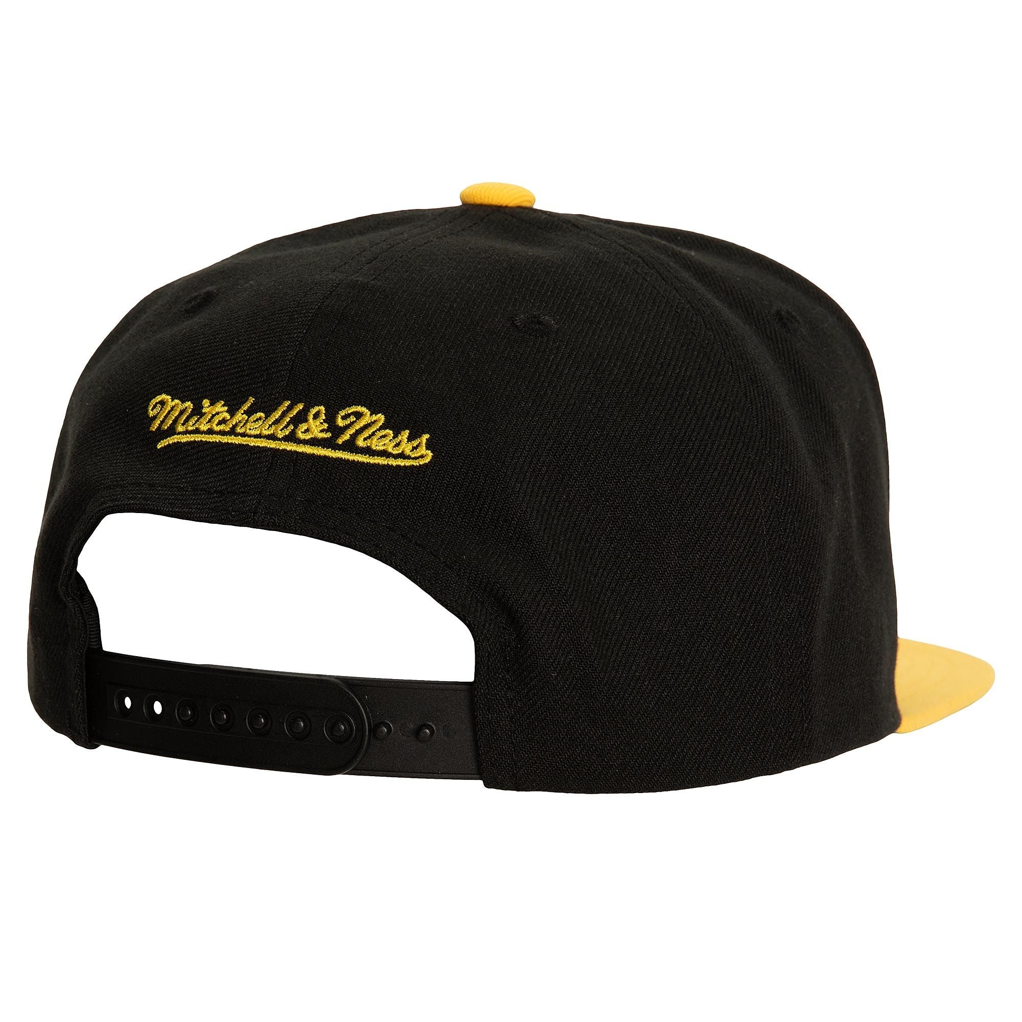 The Snap is Back. Mitchell & Ness bolsters the popularity of sportswear, delivering headwear in the company's most famed silhouette-the snapback. The snapback features a high-crown fit with pre-curve brim, 100% polyester wool-feel crown and visor, a contrast undervisor, raised, flat embroidered front logo, flat emrboidered side logo and a snap closure.