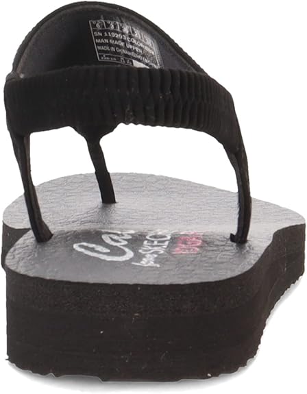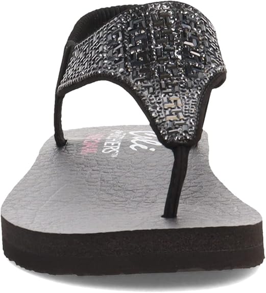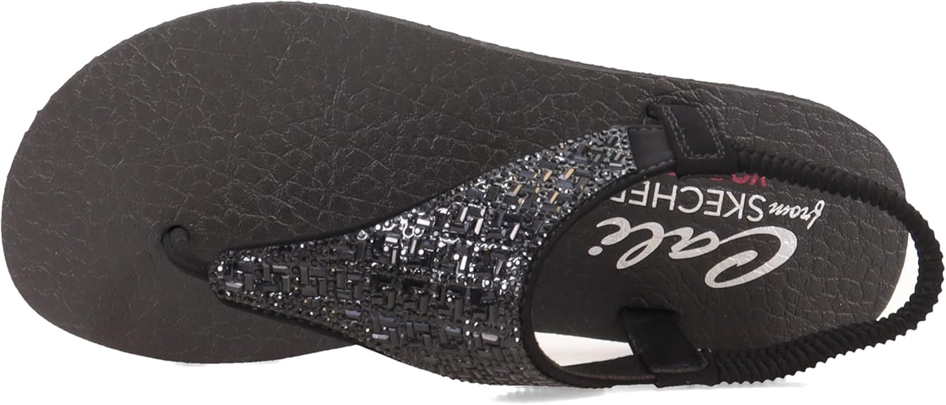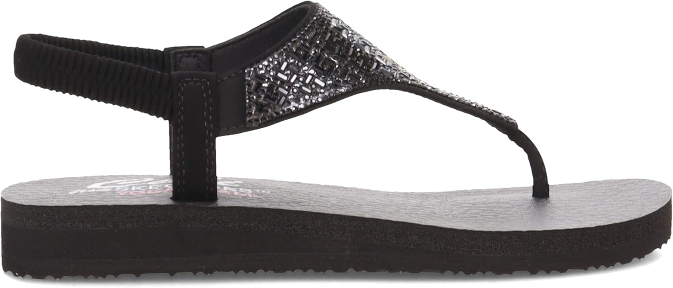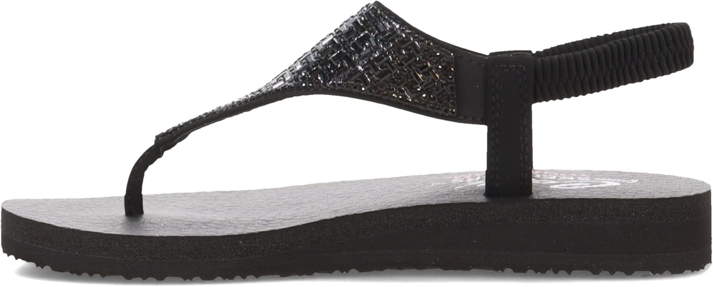 Sparkle in the sunshine with easygoing comfort wearing Skechers Cali® Meditation - Sweet Rock. This casual thong sandal features a rhinestone embellished synthetic upper with stretchable sling-back strap and a cushioned Yoga Foam comfort footbed.