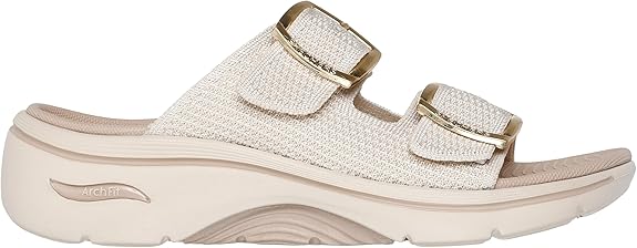 Add trendy style to your day with Skechers On-The-Go Go Walk Arch Fit 2.0 Sandal - Chloe. This double-band sandal features an adjustable upper made of Quick-Dry knit, lightweight ULTRA GO cushioning, high-rebound Comfort Pillar technology, and a contoured Goga Mat footbed with podiatrist-certified Arch Fit support. Machine washable.