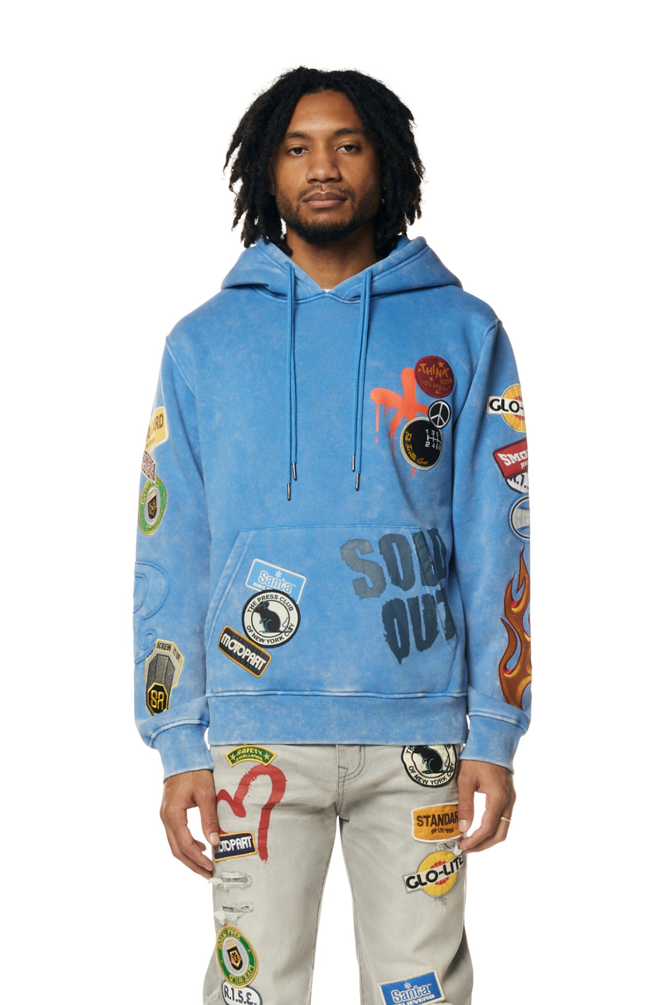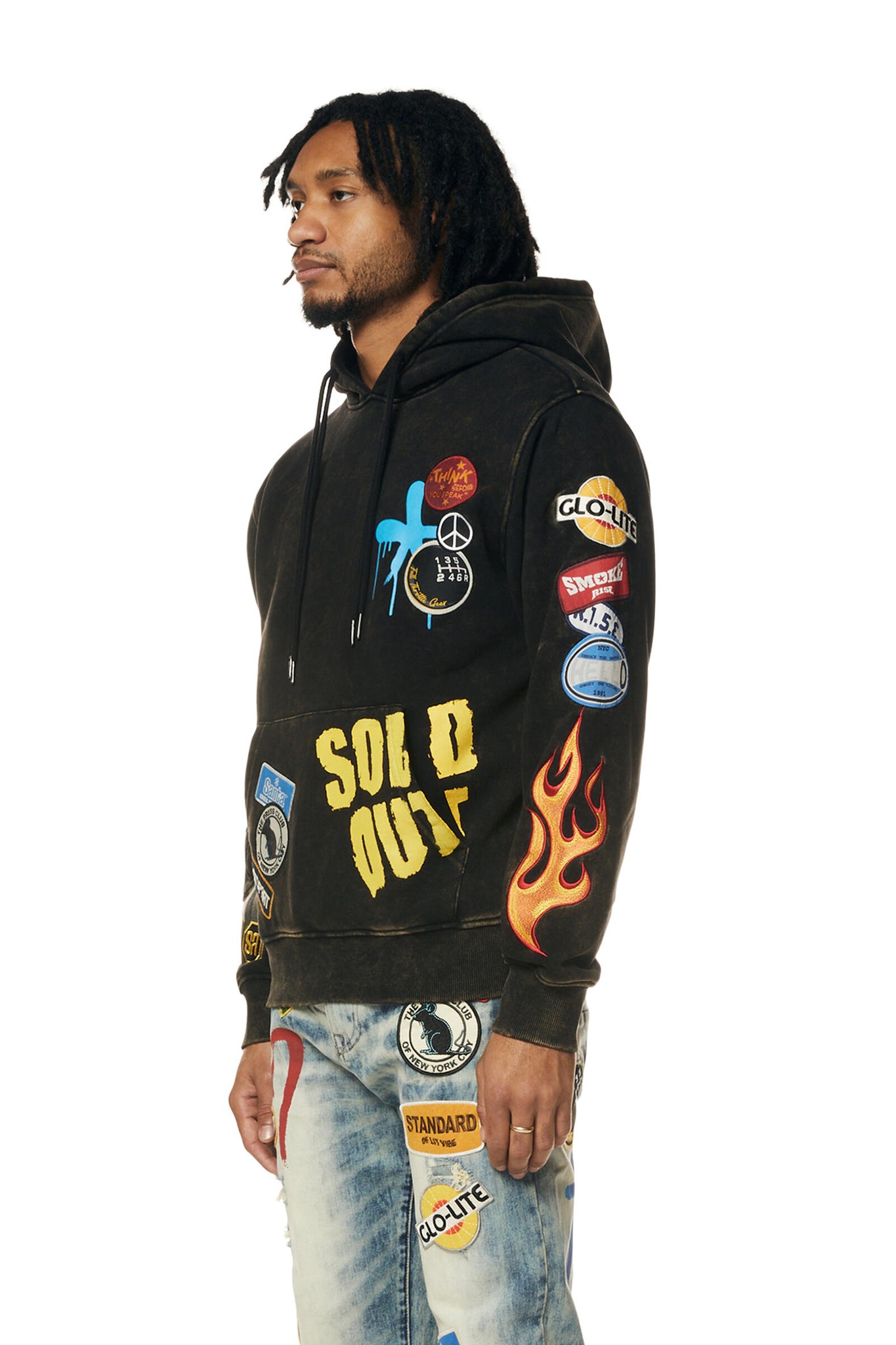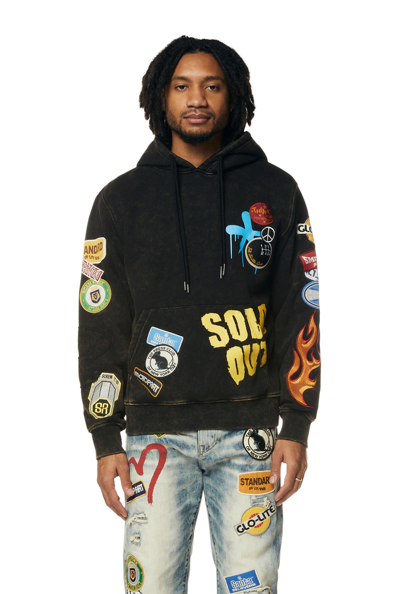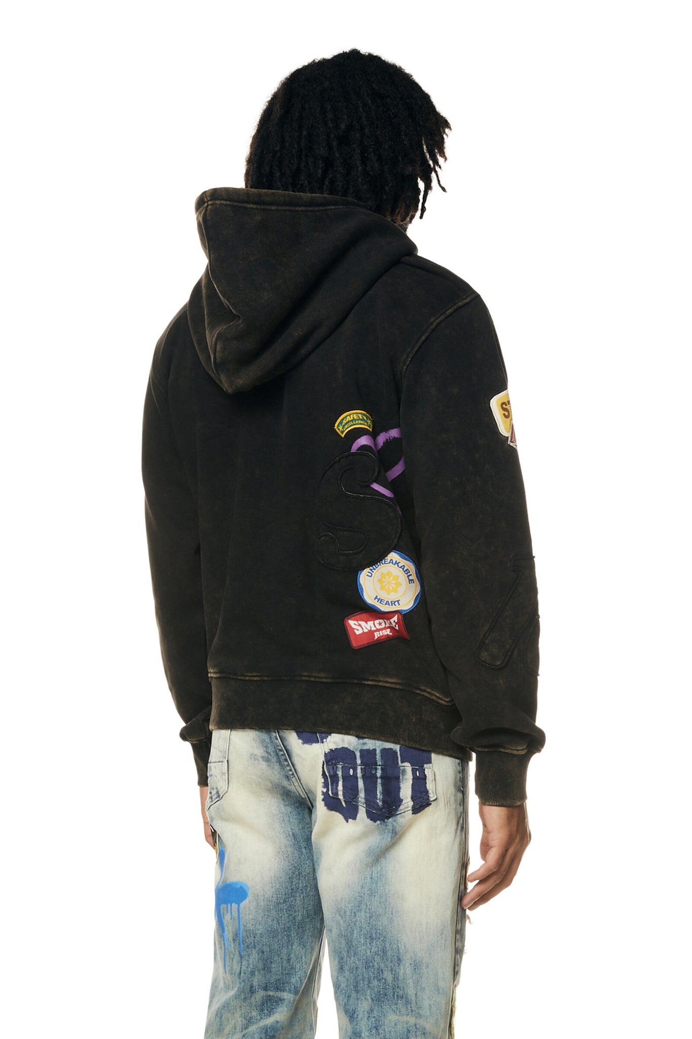 Smoke Rise Men's Multi Embroidered Patched Enzyme Washed Hooded Sweatshirt