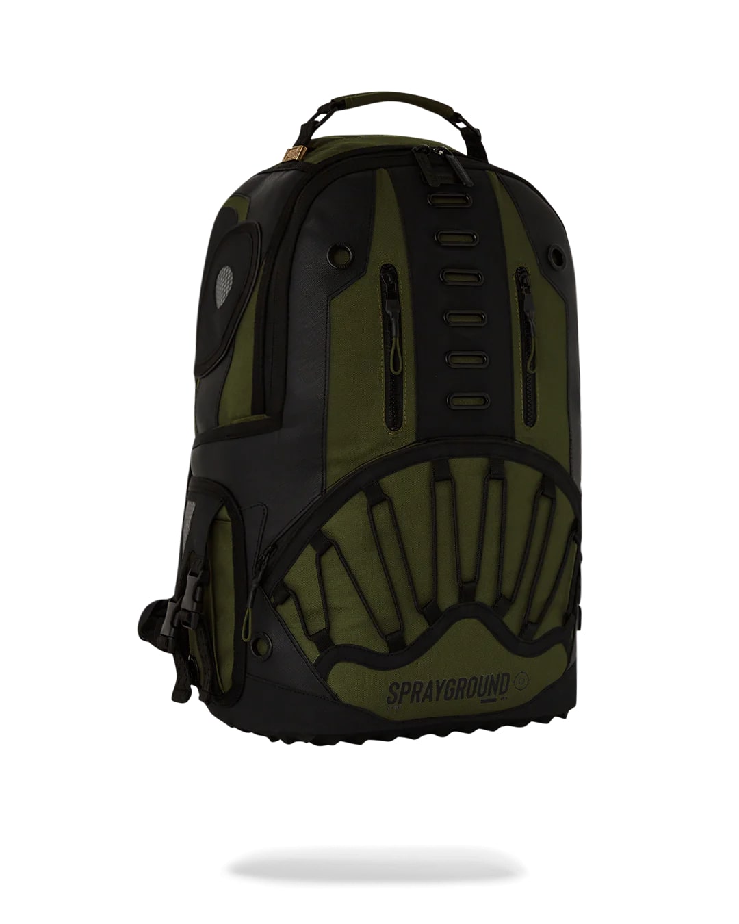 • Gold zippers with metal hardware, Metal "Sprayground Authentic" badge