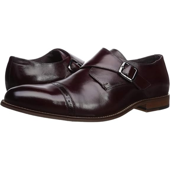 Meticulous detailing makes the Stacy Adams desmond cap toe monk strap one of a kind. You’ll be ready to take on the world with this beautifully crafted monk strap.Stacy Adams and men who know style have been a perfect fit for over 100 years. Founded in 1875 in Brockton, Massachusetts by William H. Stacy and Henry L. Adams, the Stacy Adams Shoe Company has long been a part of American culture. From the roaring '20s and the post-war boom, to Prohibition and the jazz era, Stacy Adams has been there. Stacy Adams is more than shoes--from head to toe they cover your style from hip-hop to silky soul.