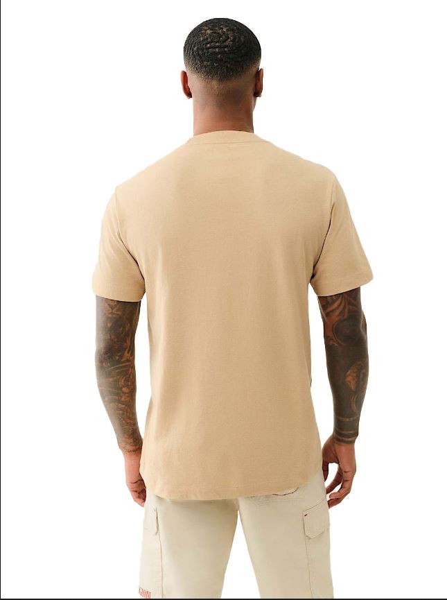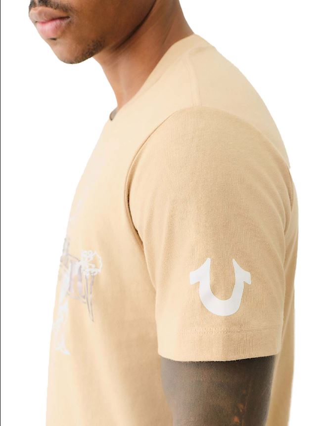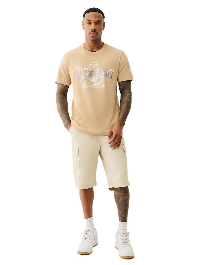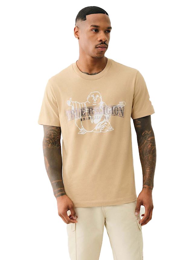 Level up your T-shirt game with the Dimensional Logo Tee. Crafted from 100% cotton, this tee features a crew neck and short sleeves. Complete with a metallic True Religion logo and a high-density Buddha logo layered on top.