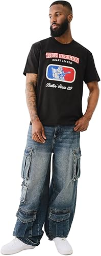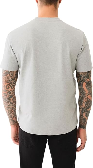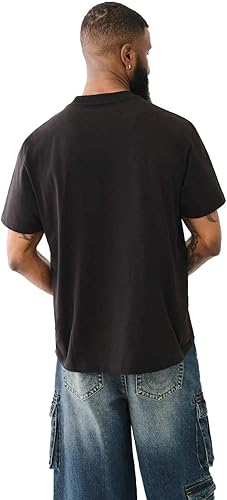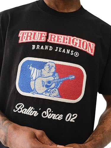 Elevate your casual wardrobe with the True Religion Men's Embroidered TR Logo Tee, a perfect blend of comfort and signature style. Crafted from 100% cotton, this t-shirt features a classic crew neck and short sleeves, ensuring a comfortable fit for everyday wear. The standout feature is the embroidered True Religion logo on the chest, adding a touch of authenticity and brand recognition to your outfit.